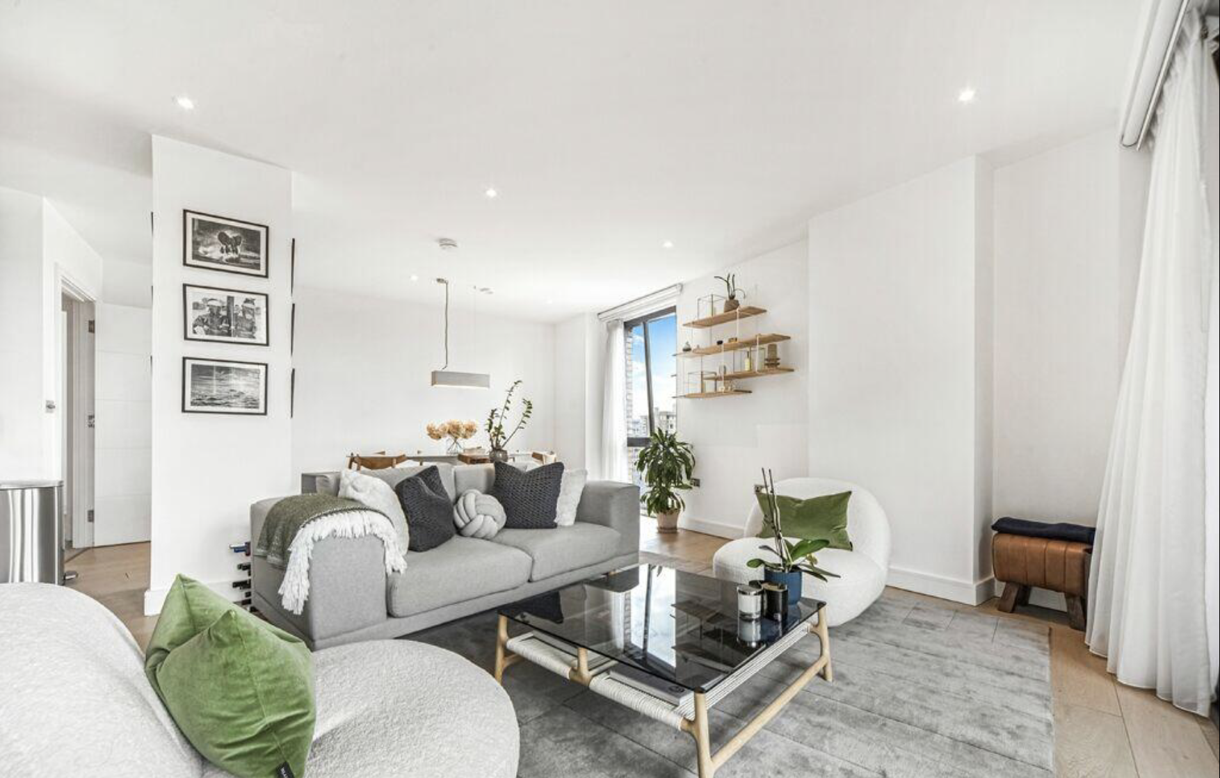 We assisted with the furnishing and styling of a three bed, two bath penthouse apartment in Shoreditch, London, for a busy professional and her adorable Shiba Inu pup. The design inspiration was scandi-modern without sacrificing warmth and comfort. Our client loves to host, so having ample seating and open space for socializing was crucial, along with a functional bar cart for easy self-service.